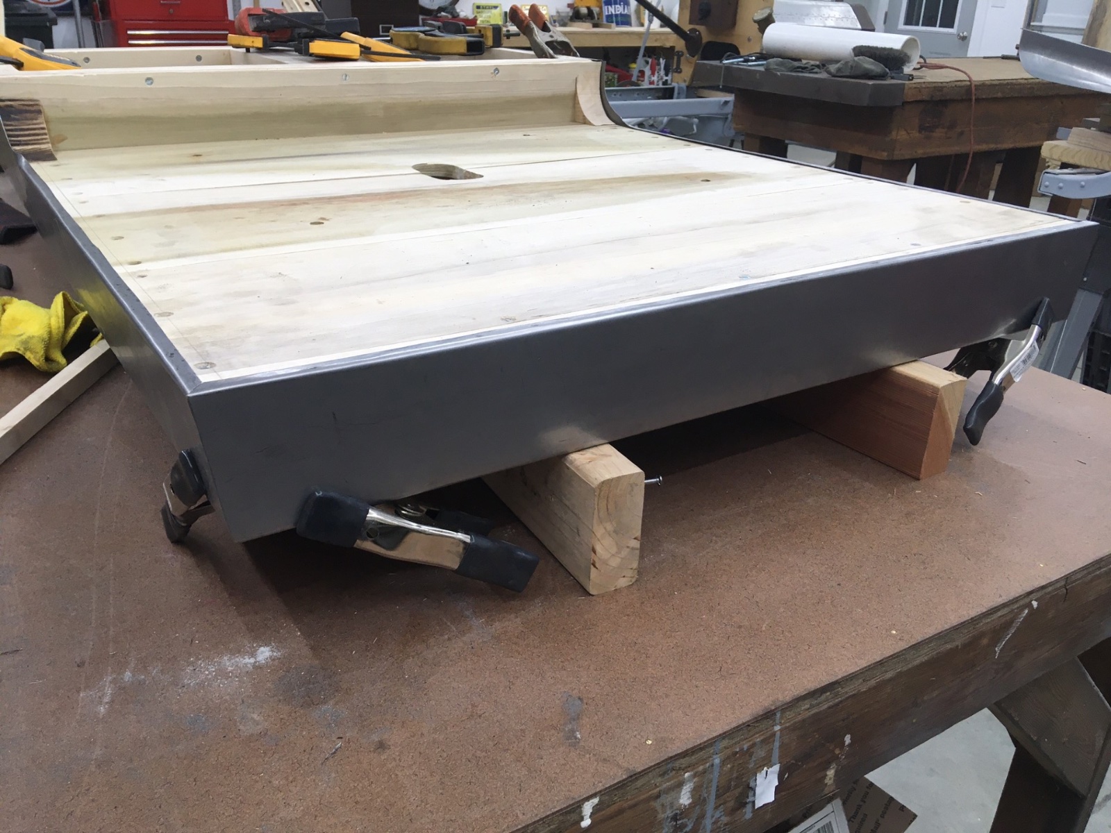 So time to skin the body. I start by routing the edges where I want the sheet metal level with the wood.