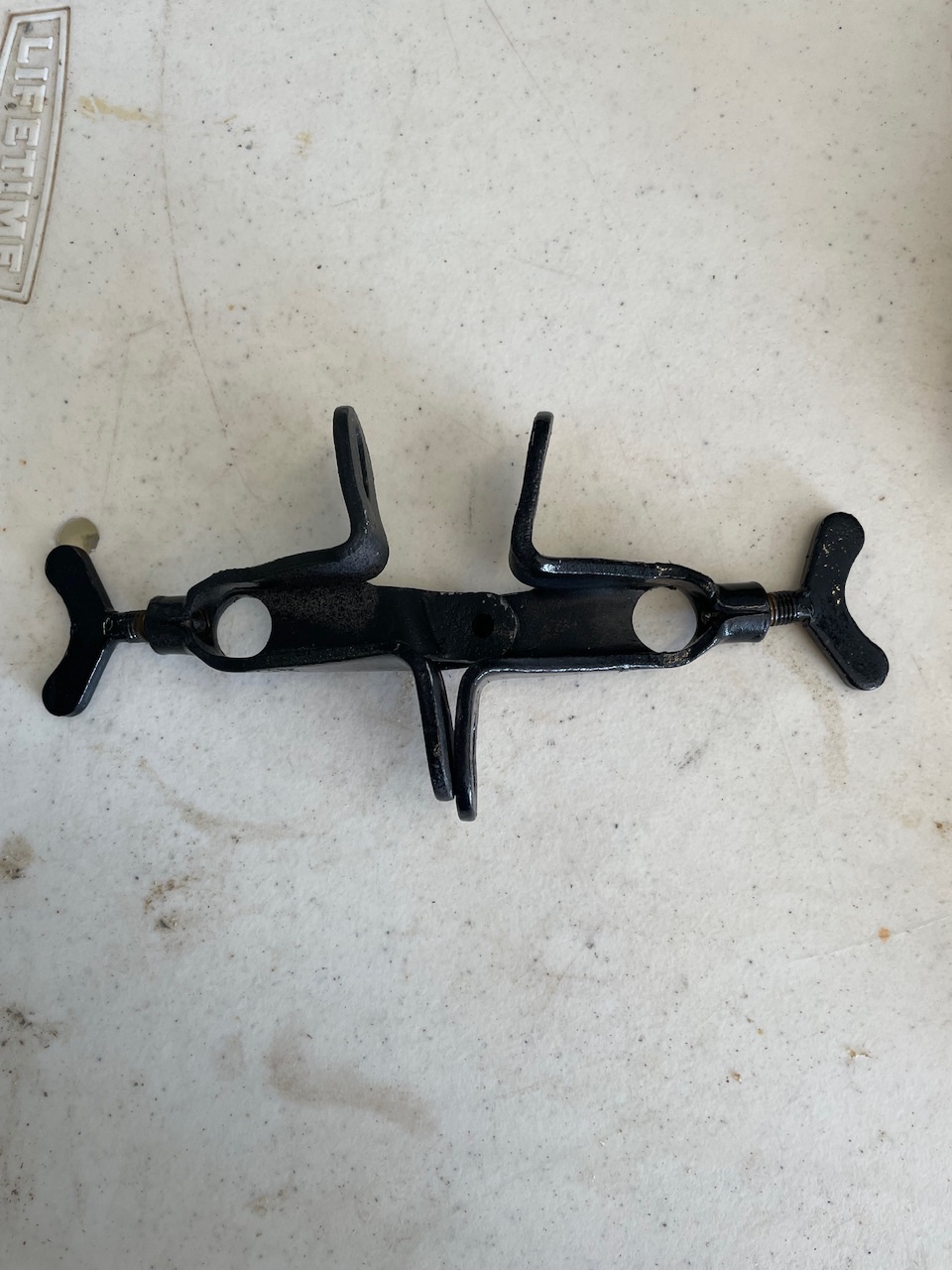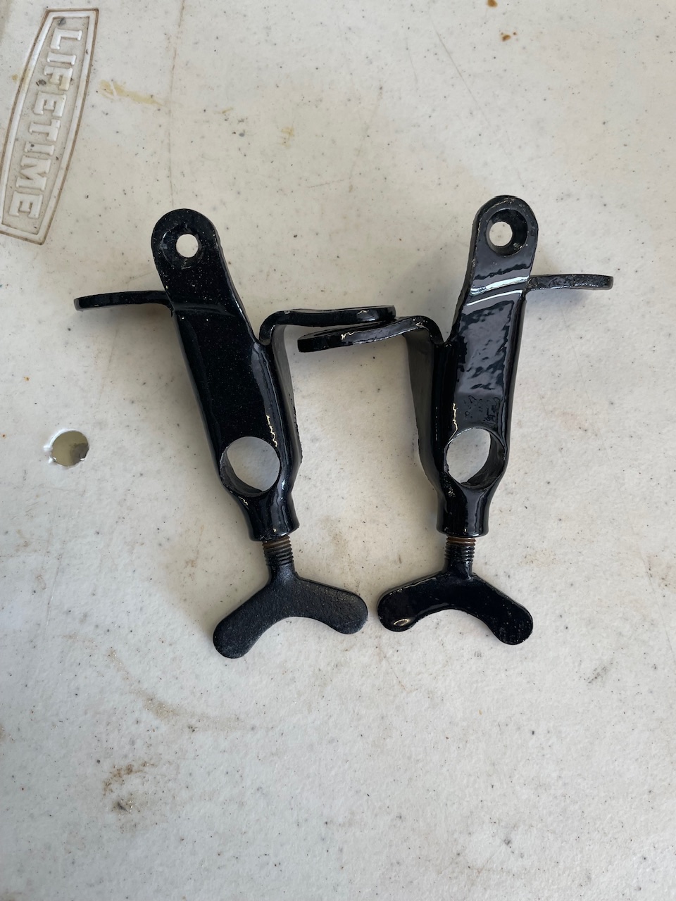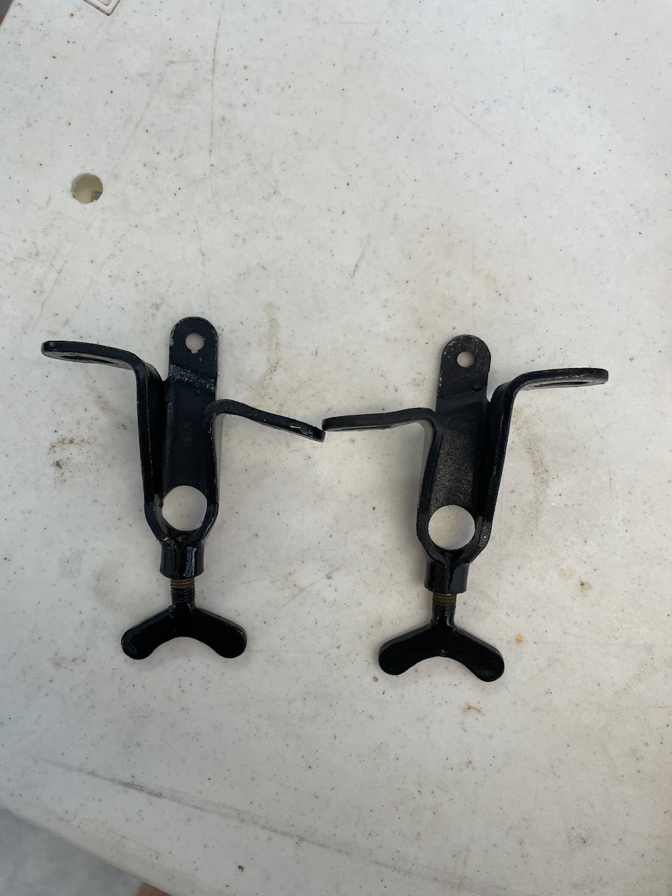 So after figuring out how long my front top iron is supposed to be and fabricating one, the how long the straight wood pieces are between the irons, now I’m trying to fit things together up top and come to the windshield brackets that came with my swap meet (incomplete) top irons so many moons ago I didn’t know better! Here’s what I’ve got and it seems the two ears that fasten to the front wood should be pretty much even with each other instead of the rather large offset that looks like they would fasten to the curve of the top iron. It looks like I’ve got a few hours of blacksmithing and welding work to make these things fit/fasten correctly. Does anyone recognize that these may be for an earlier year or possibly another make?