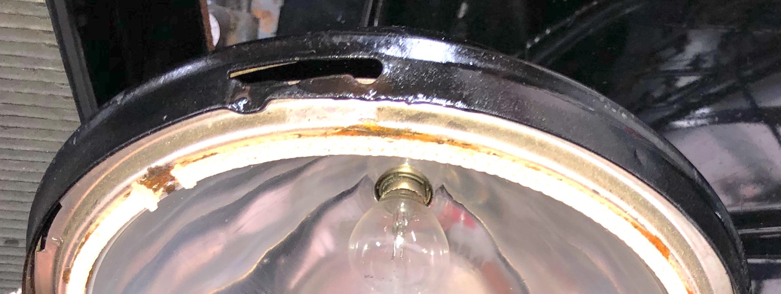 Using a tool to rotate the reflector helps to align the cutouts with the detents. There are small holes in the reflector edge, so a small pick or hooked tool can fit in the hole for rotating the reflector. Then the reflector can be pulled away and lifted off the bulb socket.