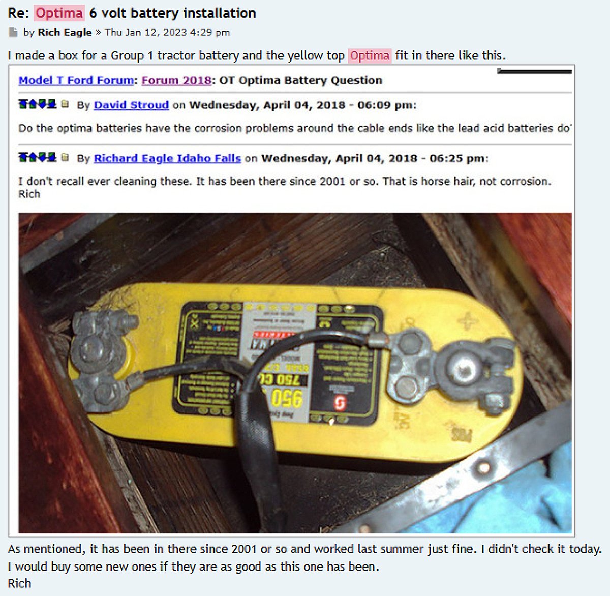 Re: Batteries for brass era cars - what do you use?