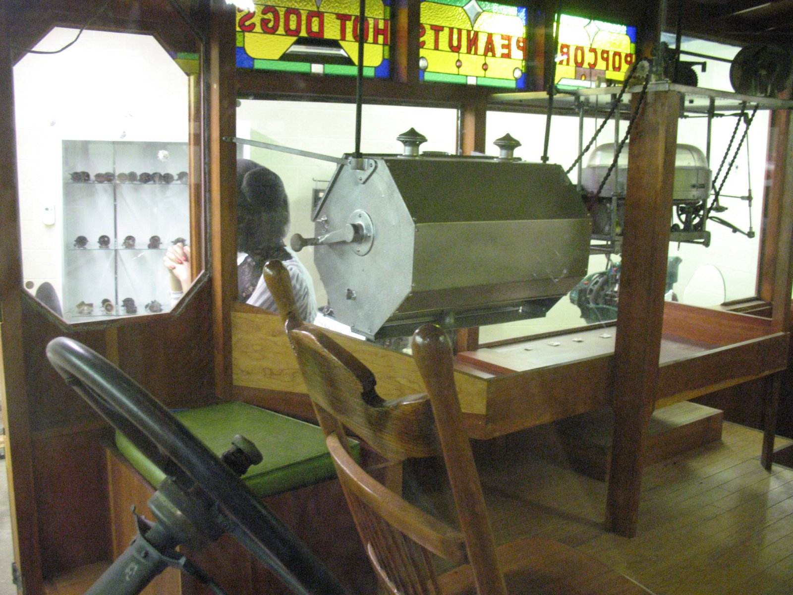 Two vehicles on display in the museum annex are a 1925 TT popcorn truck and a TT bus.