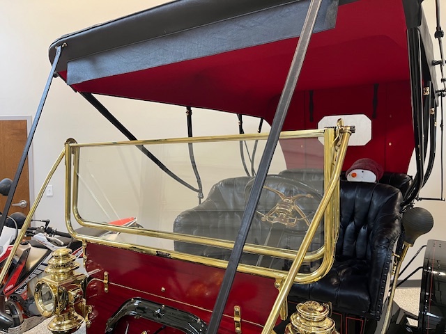 Hi Wayne. You mentioned gathering information on other windshields. I have an unrestored Mezger Automatic windshield used on early Ts. It came to me without the name tag but there are two tiny holes on the outside of the lower frame where the tag was mounted. The two halves cannot be switched because the panels are different heights and the hinge/rod brackets are fixed in position and the hinge arms must point toward the front. These featues unequivically proove the position of the tag is on the outside of the lower panel.