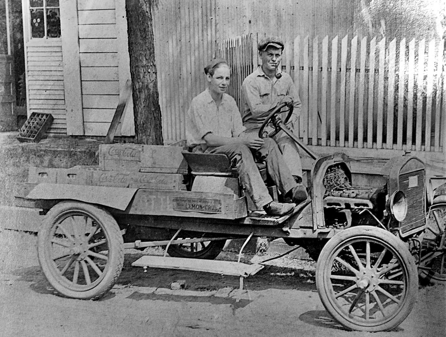 Rather than thrown together, I recon the CocaCola delivery truck is basically a 1915-6 car which just has a later radiator fitted. Rather neat that they fitted the radiator steady rod through the hood hinge rod hole.These days the Coke crates are probably worth more than the car!
