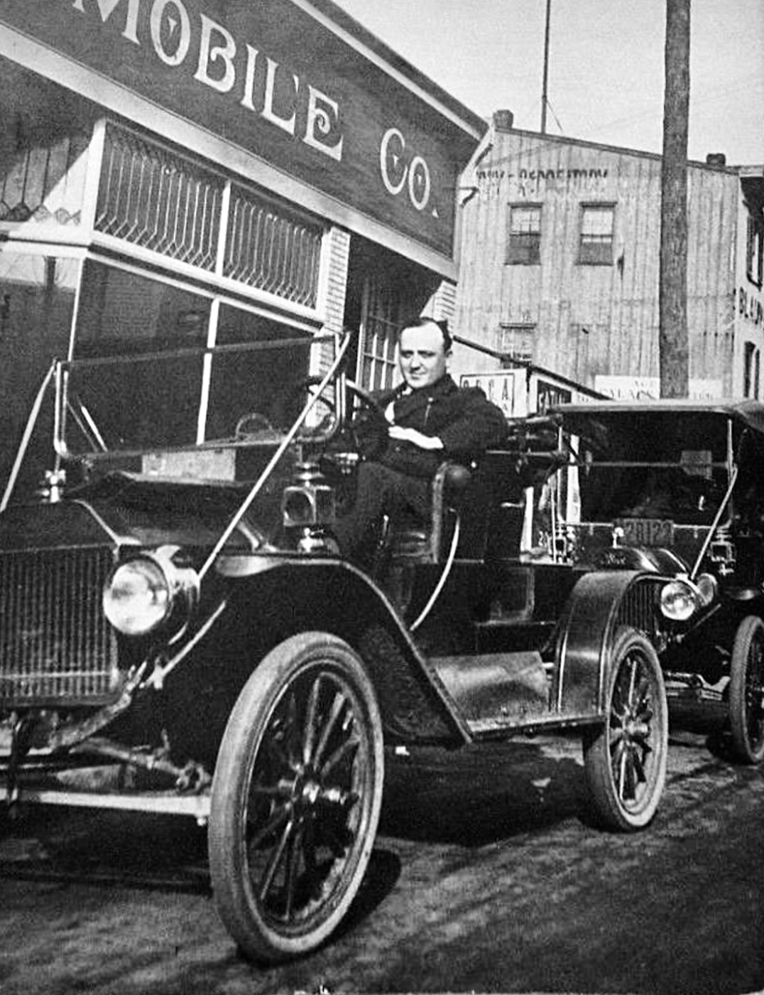 Number five. Maybe 1911 or 1912 mother-in-law roadster in front? Interesting, both cars appear to have electrified headlamps?
