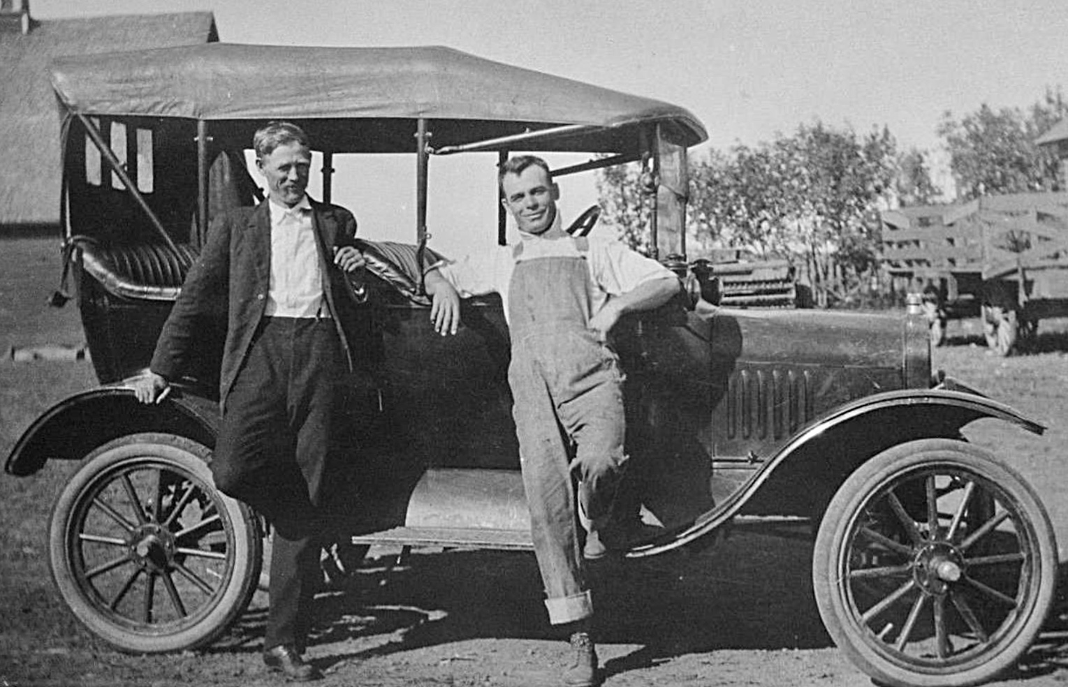 The model T, probably a 1915 (lamp trim appears to be brass?), and I suspect another runabout. It also appears to have an after-market horn.