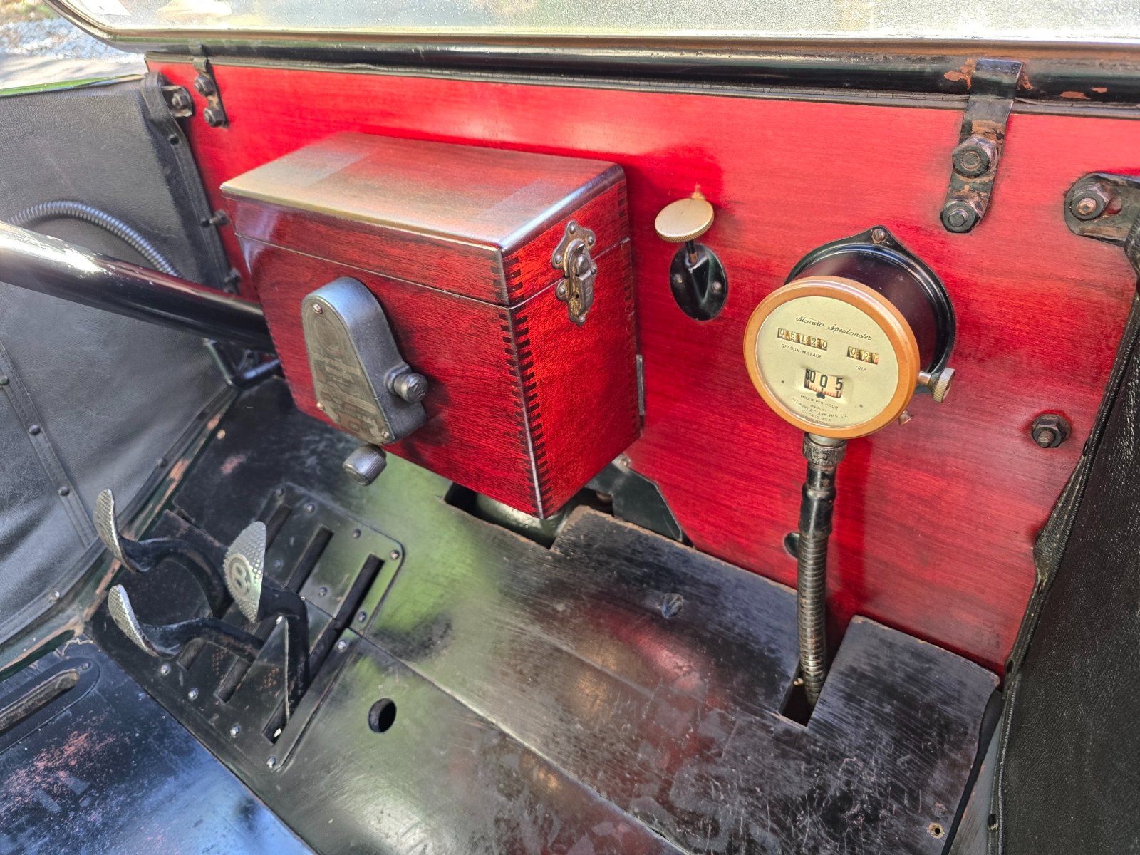 I have this one it’s early around body number 191xxx. It doesn’t have the reinforced rear door brakets and has knurled spark and throttle levers and it appear to have the original paint and upholstery and it is black. Notice the all brass lamps and billed front fenders although one has been replaced.
