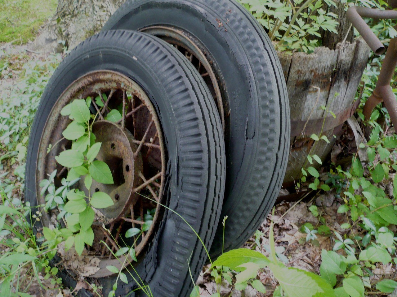 This one is of my precarious Coupe body waiting to be lowered onto the chassis. I was choosing the appropriate nuts and bolts for the spare tire carrier. These old bodies have a lot of character.