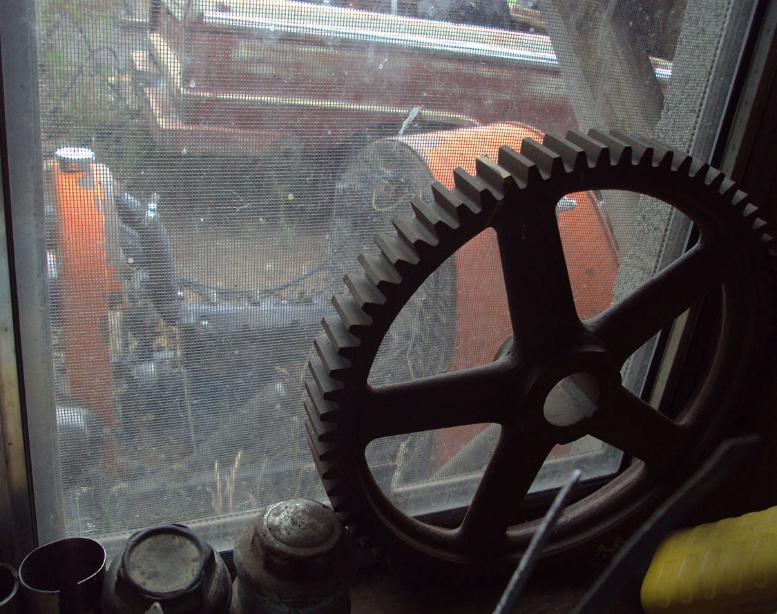 The window screen provides some texture to the vehicles out in the daylight. I thought the "Dark Side" of the gear made for some interesting contrast. I enjoy the light changes in gear teeth as their identical shape changes around the circumference.