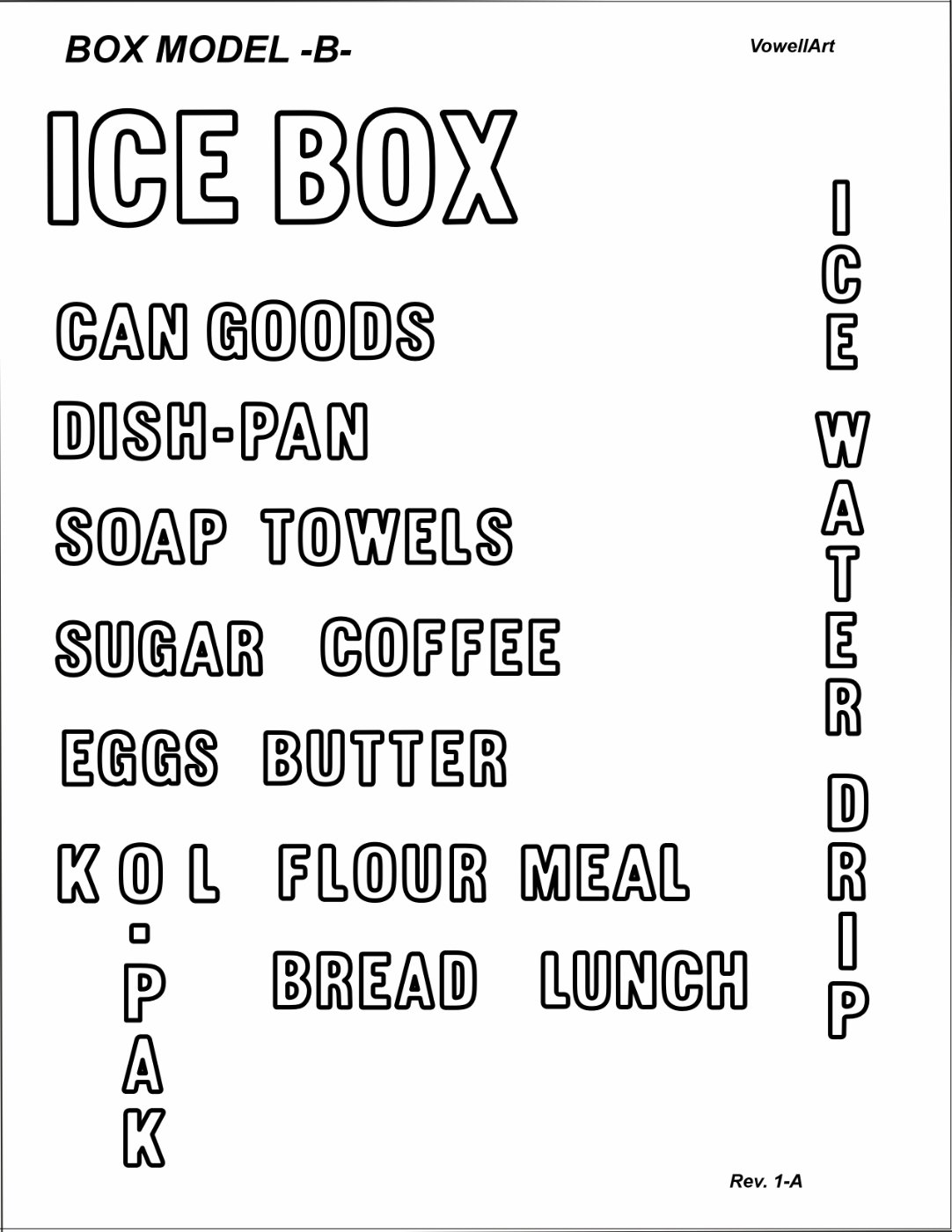 Camping Box A 1 inch "ICE BOX" and all other letters "5/8" inch.