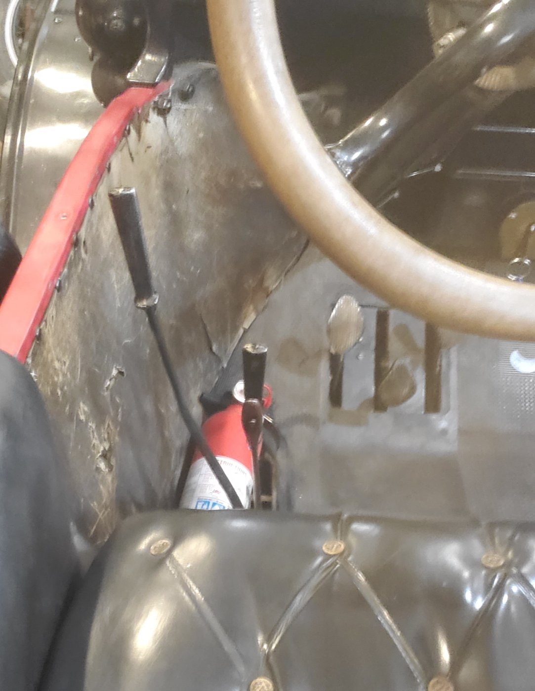 I made a left shifter from a p-brake lever with pillow blocks on top of the frame so the lever comes up thru the very rear of p-brake slot, and extends above the "door". Its very comfortable to get to without reaching too far.