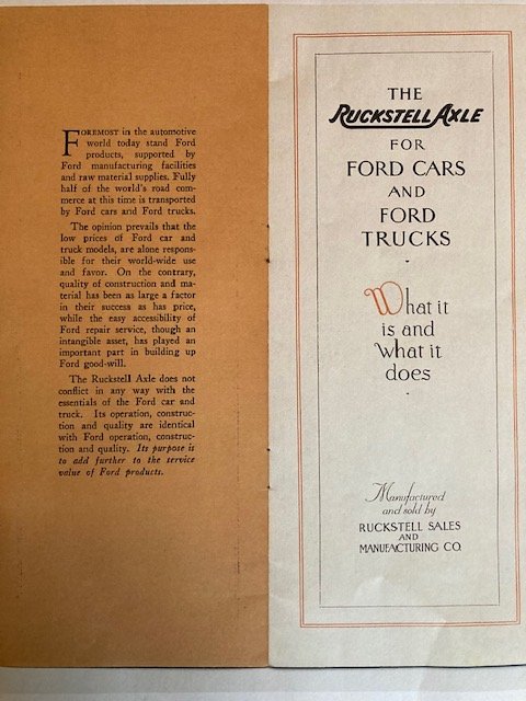 Perhaps it is time to recognise that a Ruckstell axle is a very handy gadget to give a T model a gear between bottom and top. The only time a Ruckstell is usually used is to change to Ruckstell low to help pull hills which are too steep for the T to climb in high gear, or to crawl in Ford low gear in a parade. The so called Rucktell high is just a direct drive like a standard T. Forget Ruckstell high, it is Ruckstell low which is desirable. So, when you are taking advantage of your Ruchstell you are using Ruckstell low.