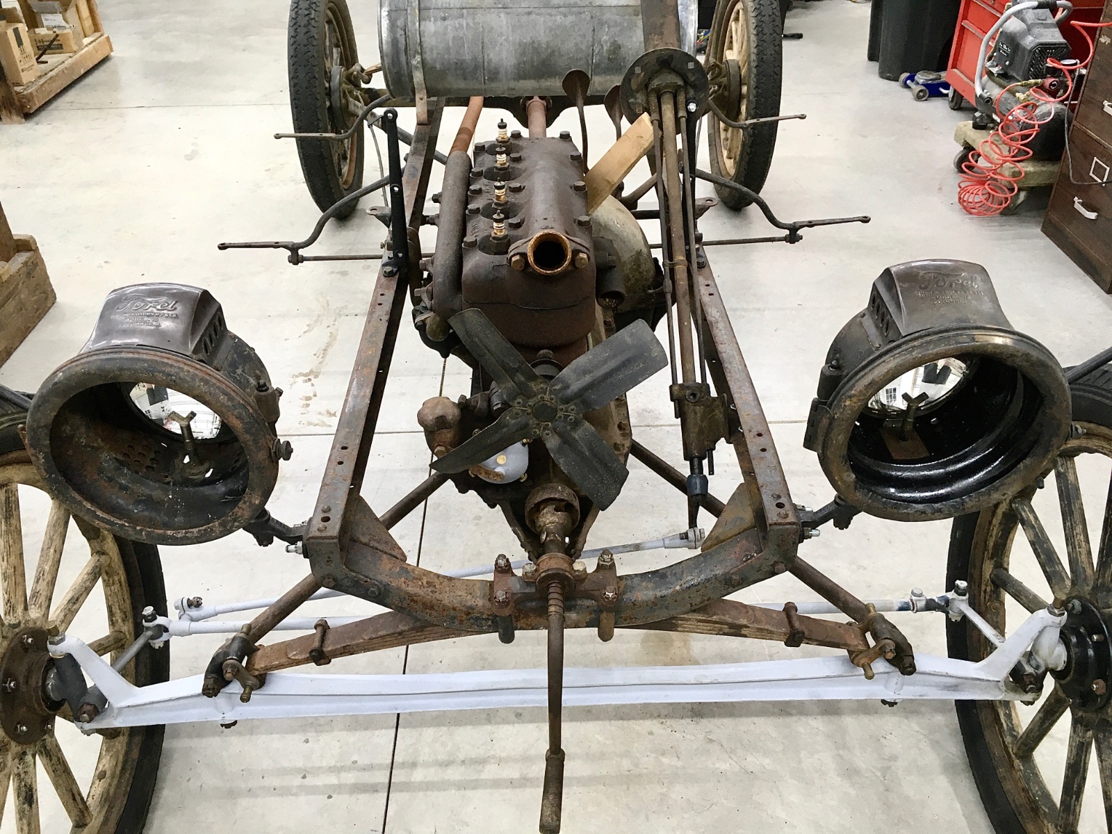 I don’t know the history of the 111 year old frame, but there are extra holes. Has a crack at the motor mount and had a plate welded over it that I removed. I haven’t been able to find the rear casting for a 11-14 muffler, but when I do I will correct that. My goal was to assemble a chassis, not restore it. It has been a fun challenge without the headache of serious money and untold hours of work. If I don’t do anything with it, it will be a good start for the next guy.