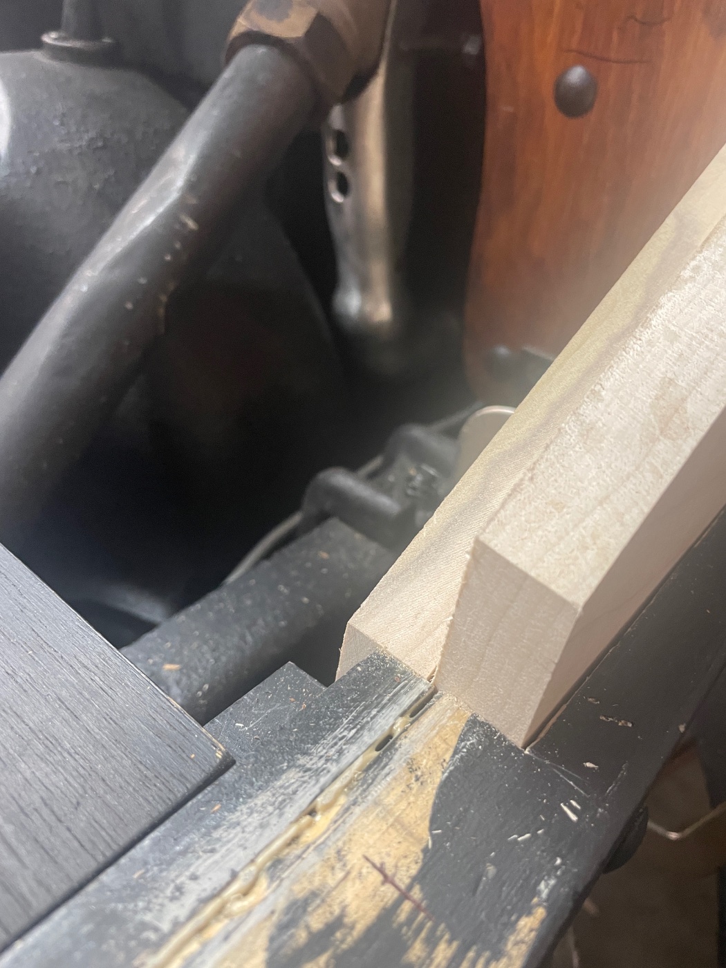 I'm ashamed to admit that it took me three years to complete the job. This is due to not wanting to cut a hole in the original front floor board. I purchased a partial new set from Jon Anderson in New York. This allowed me to finish the job by installing the shifter.