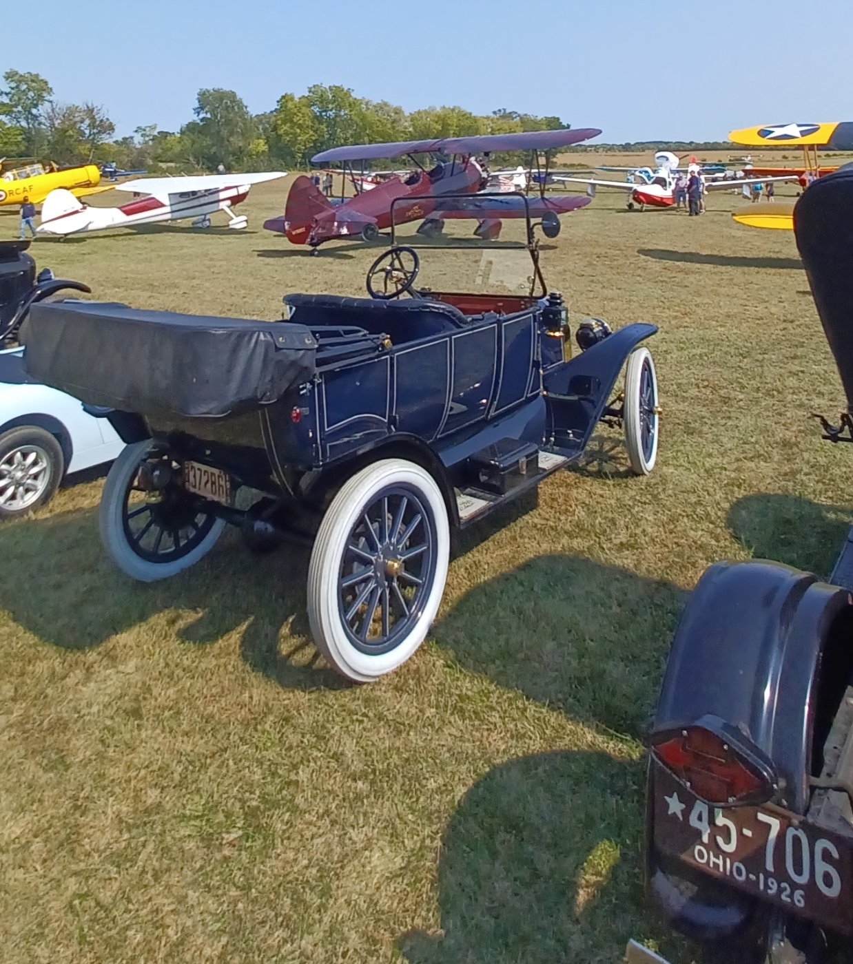 It had over 40 planes this year plus 6 model Ts & our Prez's '40 coupe. I gave 6 or 7 rides to various bunches of people in my '13 touring, of all ages, lots of kids. Jim Riedy also did in his '26 Runabout. Was absolutely a blast. Perfect weather helped! A lot of good food of course.