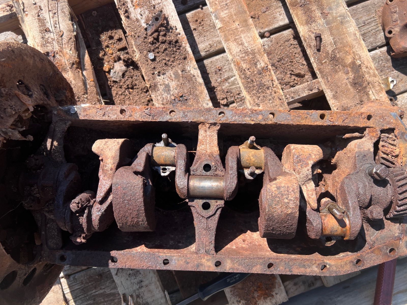I recently, against my better judgement, purchased a pre/1919 engine that had been sitting outside for decades. I was hoping to at least get a spare hogshead out of it but no luck. I cracked it. Crankcase was packed full of dirt. Out of curiosity I hosed it out and pulled the #2 main cap off. The journal was decent