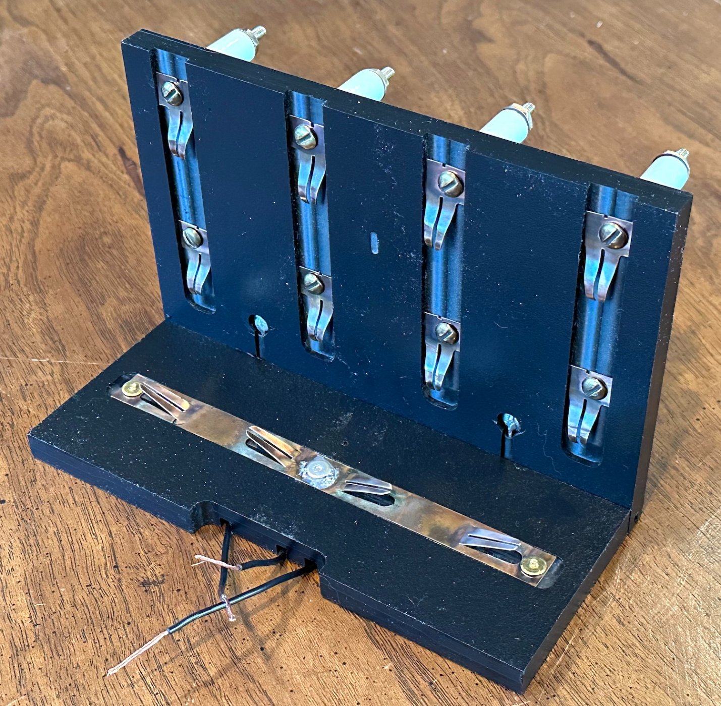 Another coil was inserted in the No4 position. The bulb lit for both of them. The No. 1 slot was filled and the bulb still lit on all three. With much trepidation, I inserted the last coil in the No. 3 position fully expecting them all to die again. To my great joy, that did not happen, all four positions lit the bulb! I felt like jumping for joy.