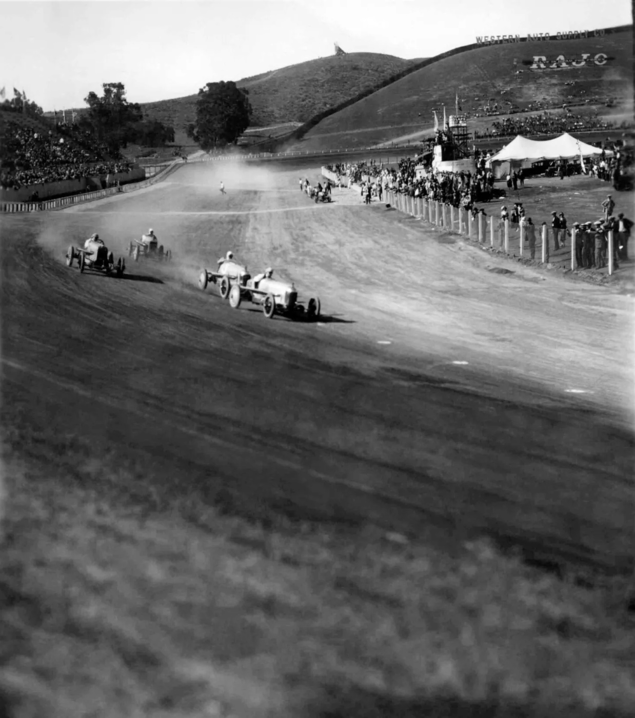 Western Auto Supply Co sponsored and advertised racing activities. Their signs could be seen at racetracks throughout the country. Here is a photo of 1920s view of a race at Ascot Speedway in El Sereno, California. Notice the signs on the hillside above the track.