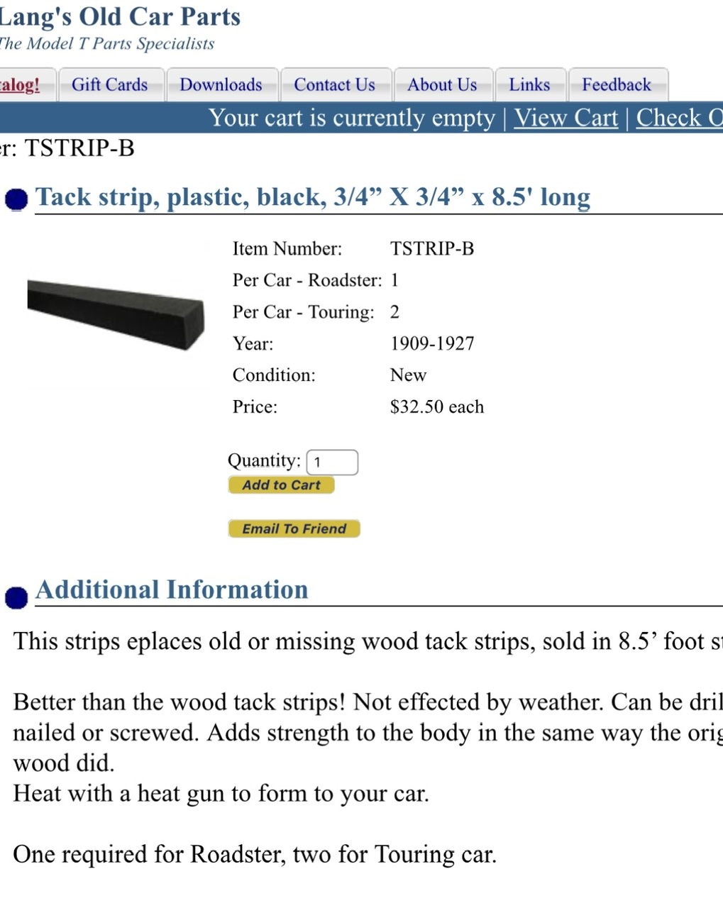 While ash or maple or oak wood tack strip is strong, it is hard to form, have to use steam to get the curve shape, tried that on my '26 and took a long time to get the wood pieces in place. Same with the '24 runabout.