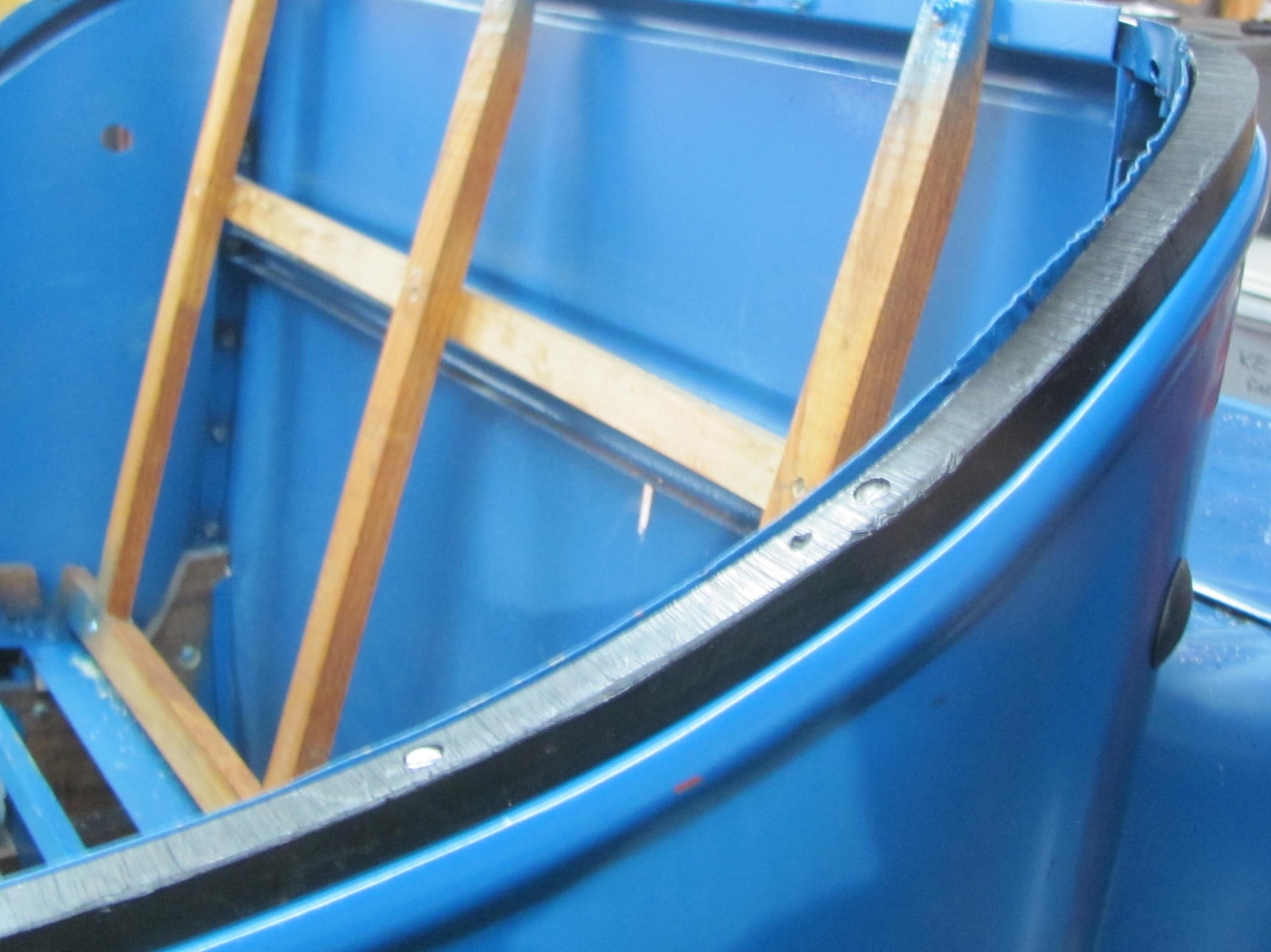 Difficult in using the new straight home made, as the body isn't straight, you need curved wood, tried the curved vendor wood, but in my lack of skills fitting that pre-curved piece to the body didn't work well. The wood curves wouldn't meet with the body curves, as the body side sweeps up and then curves as it sweeps, really impossible without wet steamed wood and then clamping to try to fit.
