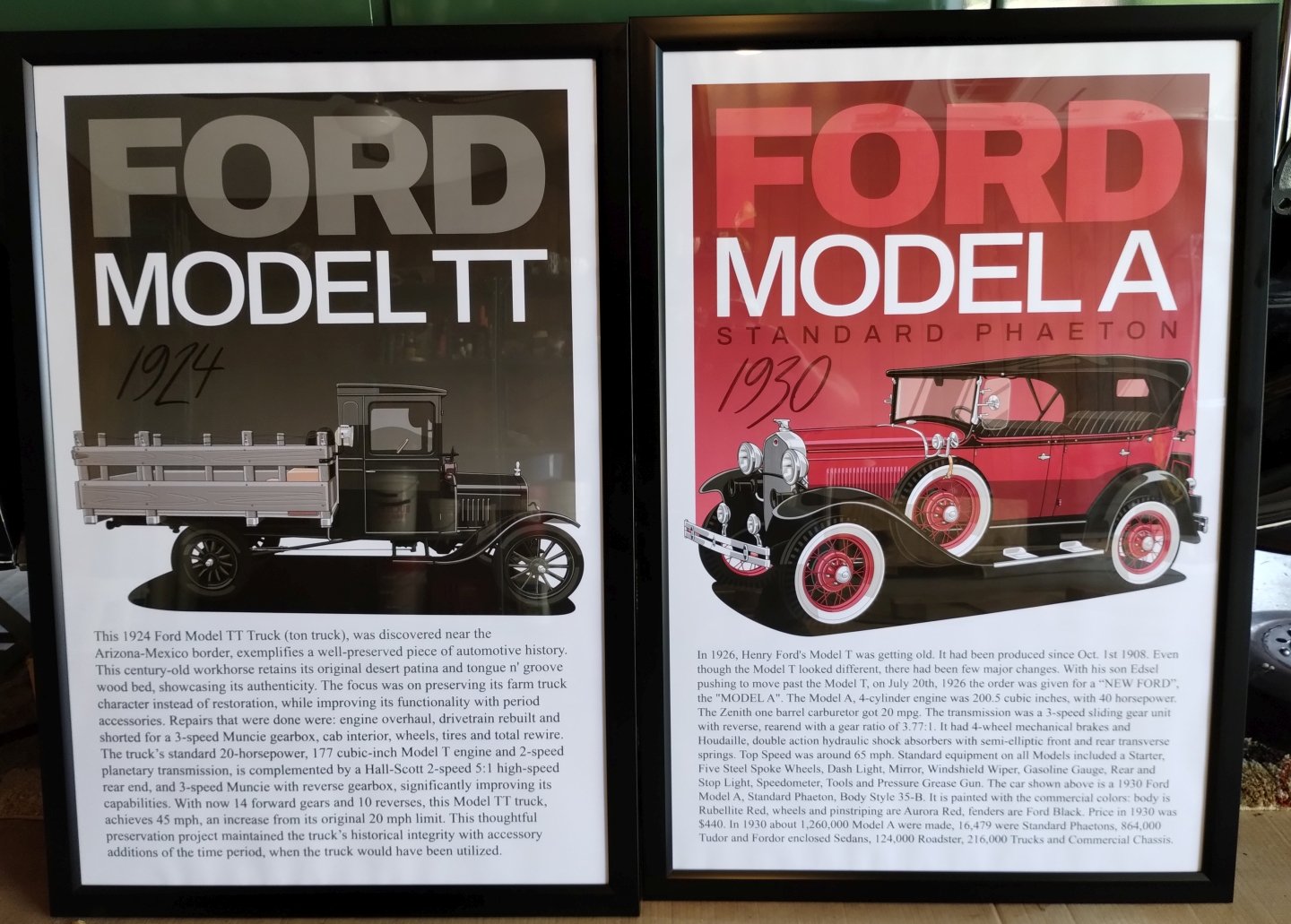 I got these for myself early birthday gift. These are framed posters for my 1924 Ford Model TT truck and my 1930 Ford Model A Phaeton. You can hang these in your house or garage. These are the big size, since I was wanting to use these for a display board when I go to shows and cruz-ins (I made a stand for them). I wrote the paragraph part on the bottom, 150 words plus. It makes interesting reading for a display board when showing the car/truck. The company is called Downshift Prints and they do more than cars. Here are some pictures, and link if you are interested in getting some for yourself. Sorry about the reflection in the pictures. The last picture is what I sent them, good artist drawing, matches very well.