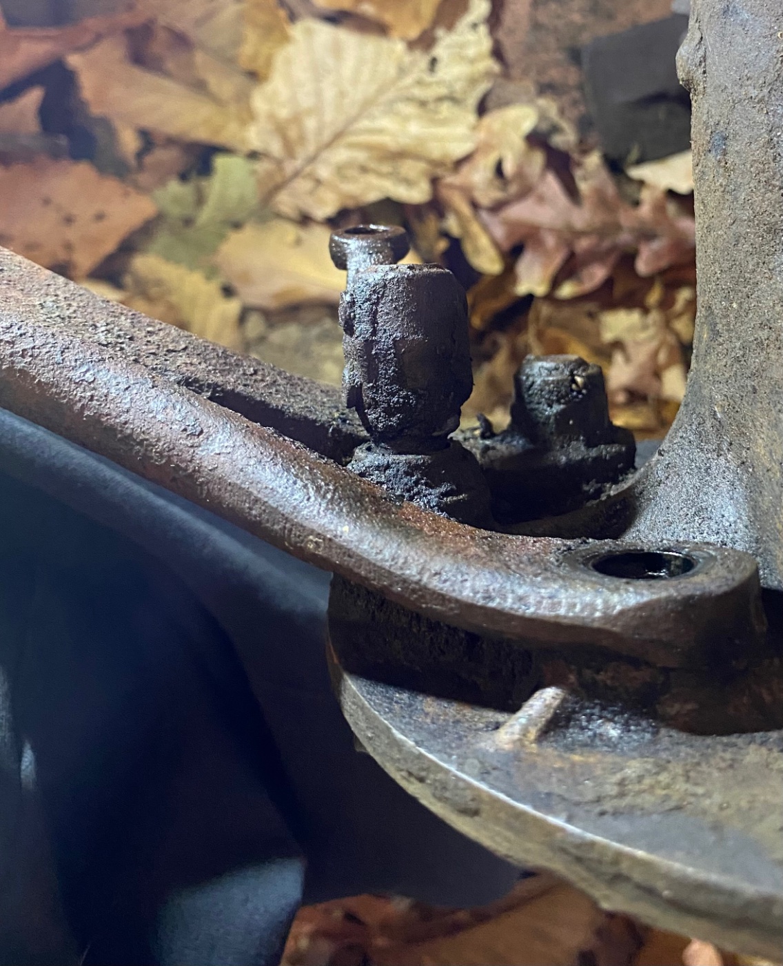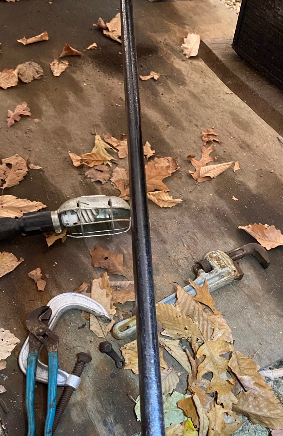So I’m replacing the parking brake arms and one radius rod on the Centerdoor. The original rod was bent so this replacement from Luray will take its place. (It, too, was slightly warped, but that was fixed in the fork of a tree).