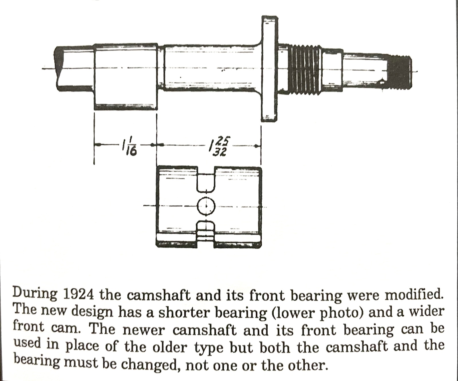 My question is whether this reground cam could be used with a pre 1924 front bearing, or would the installer need to use a shorter 1924+ year bearing? The reason that I ask is that the 1922 front bearing does fit, but since the cam was reground, there is no aft thrust surface that the bearing to hit if for some reason there was a lot of for and aft slop. There must be some way to correctly install this reground cam, or someone wouldn't have gone to the effort/expense to regrind it.