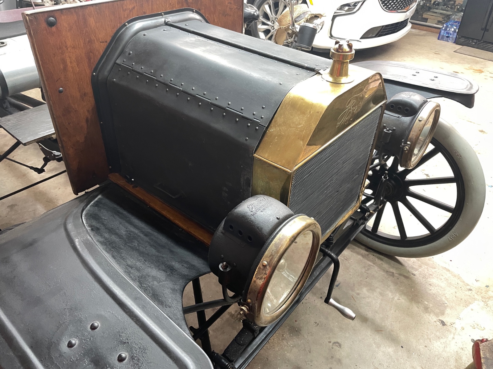 The later Ford reflector fit the bucket, and the later Ford script rims in brass (were nickel plated) fit too by just riveting the hinges and latch parts to the rims.
