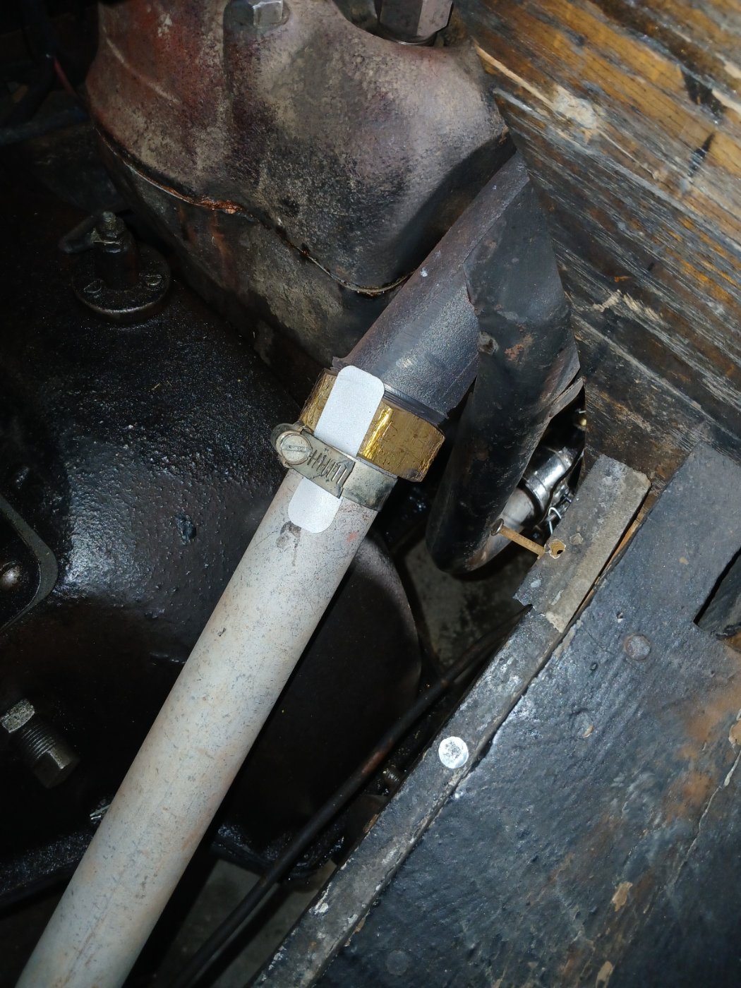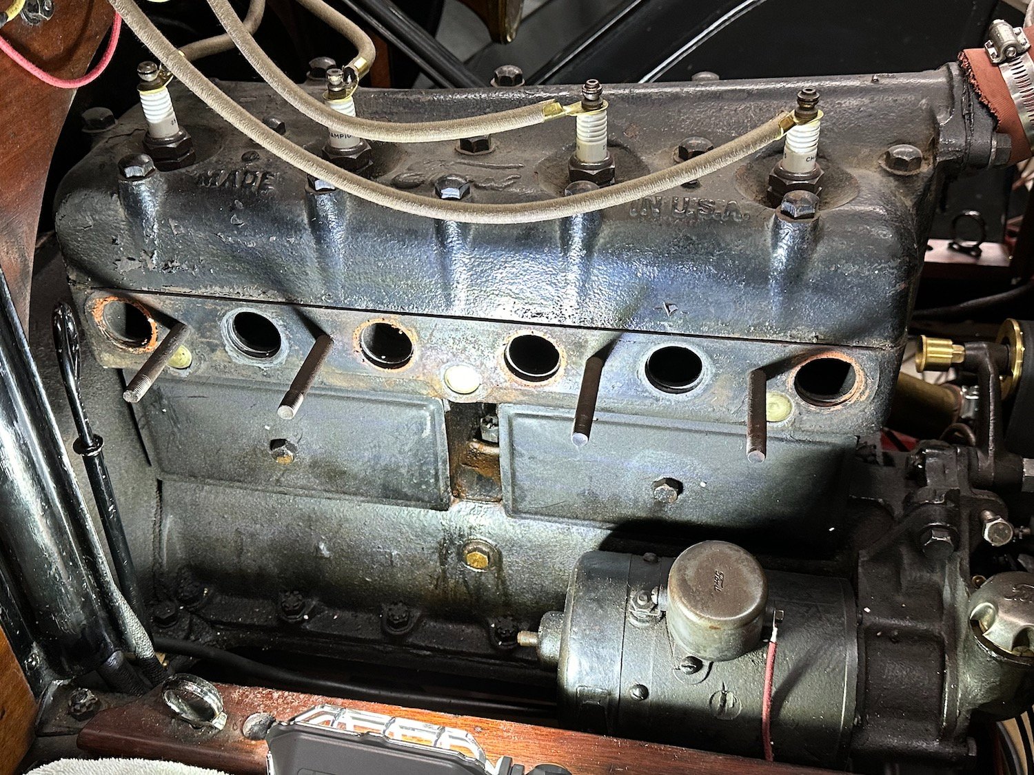 After assembling the other bits the motor started and ran at a fast idle while everything was given a good lookover. The anti-seize compound burned off the manifold but I could see no signs of leakage anywhere so out we went for a test drive. All seemed normal so into town for gas where the car drew a small crowd of the curious most of whom had never seen a car that old before. Another 1/2 hour test drive revealed no issues at all.