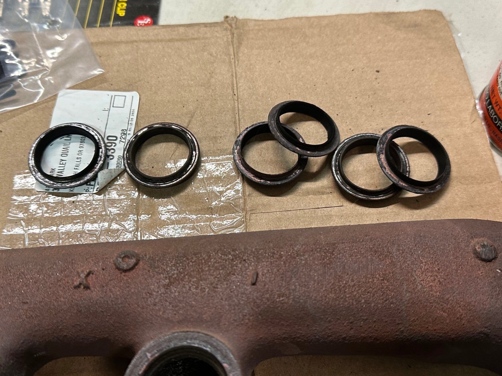 A trial fit of the exhaust manifold makes good sense. I'll try that tonight with the old rings.