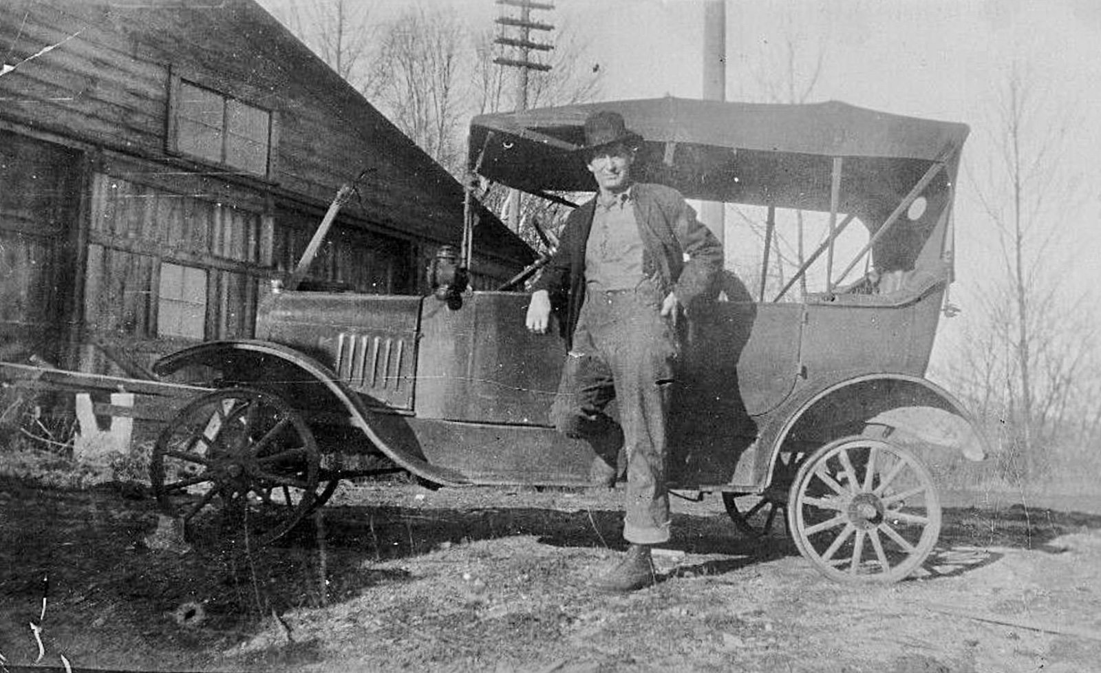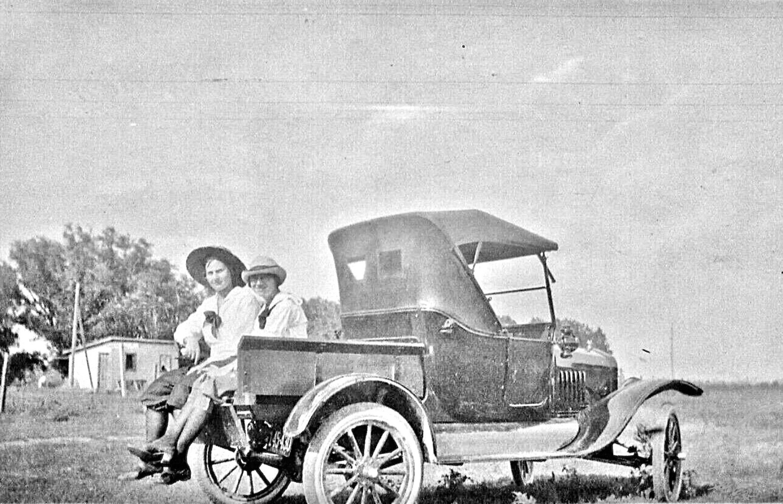The first picture appears to be a 1923 or 1924 roadster with a nice after-market build wooden pickup box. Notice the oil sidelamps again, also an oil tail-lamp can be seen under the far side of the box, indicating a car without the electrics package upgrade. Also it appears to have wood felloe non-demountable wheels, so likely a loss leader cheapest model roadster, making for a practical light duty delivery truck.