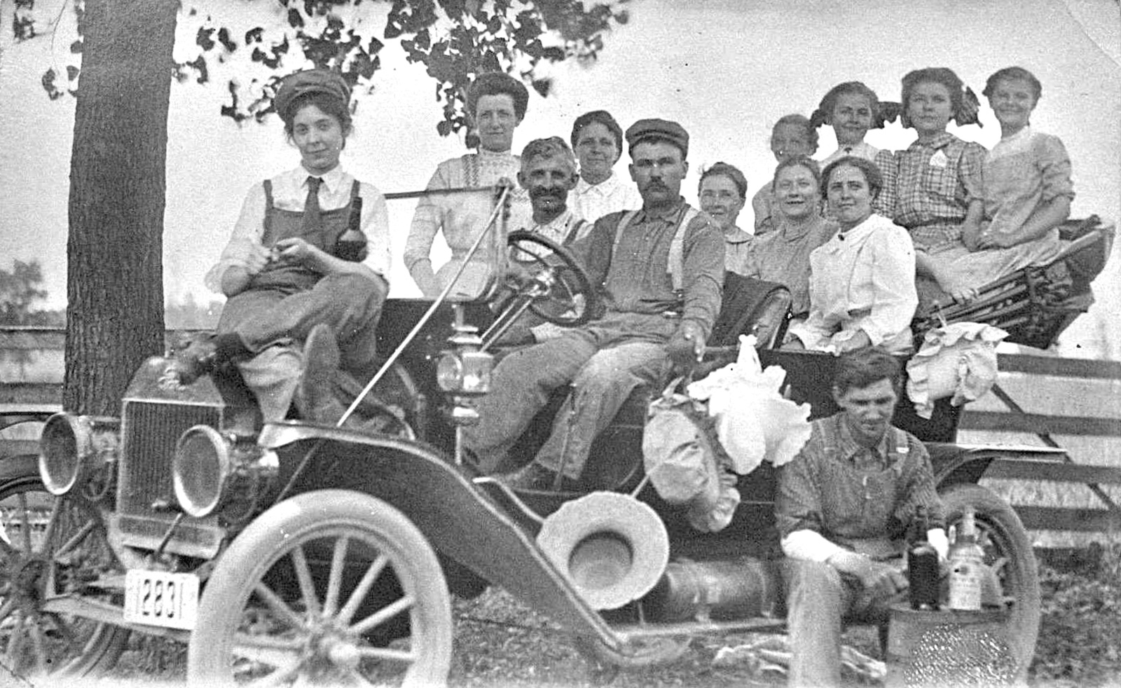 No. 4 has tire chains, presumably to navigate muddy roads. Are these folks from the city, visiting their country relatives? The gentleman in No. 14 is posing so proudly in front of a car with no tires. It looks like it should be a running car. Appears to have a good top. Are we waiting for a mail order of a new set of tires? Or is this one last photo before this car is donated to WWII scrap drive? As an animal lover, I enjoy seeing the two cats and one dog in photo No. 16. The lady on the far left has one black cat on her shoulders and she is petting another cat which is sitting on the front fender. The dog is on the far right. They are in the family photo because they are part of the family.