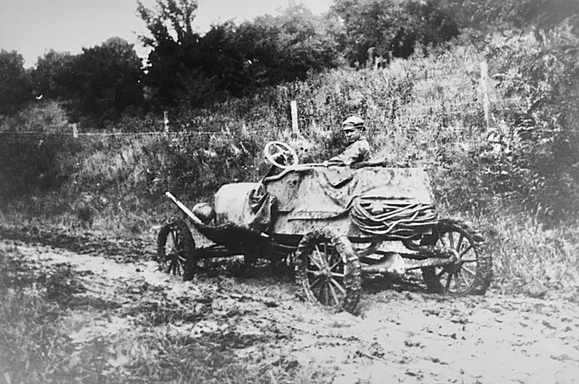 The very last image (with the guy identified in the background in blue ink) comes from Ellensburg, Wash. I believe it's the No. 2, even though the number seems to be obliterated on the hood, because some of the details match up with photos of the No. 2 from other points, like the shape of the bar on the back of the platform with the tarp removed, and also that circular or semi-circular bag of some sort (a waterskin? any idea what that bag might be?) that's hanging over the acetylene tank: