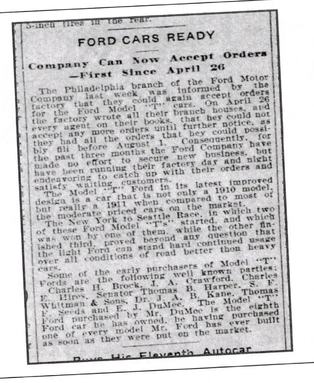 A July 1909, newspaper article stated that New York to Seattle race proved that the Model T was a tough car. and to show "you" that it is a though reliable car, here is a list of folks from Philadelphia who are buying the Ford.