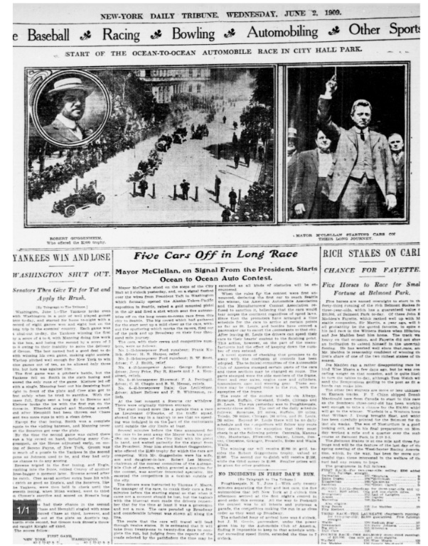 This is my first post, but I'm an enthusiastic reader/archival-searcher of the forum, as a writer and former newspaper reporter working on a book about the 1909 Ocean to Ocean Race.