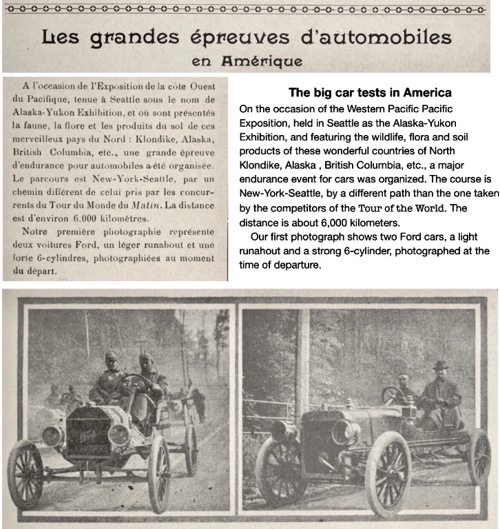 Below is photo used for newspapers of the day, by Culver Services, NY. the date this original is in pencil, hard to see 0n the reverse with the the photo service stamps, is "1st Race N.Y. 6-2-1909". This is of the big 6 Cyl Model K Ford that was the Pace car for the beginning legs of the race.