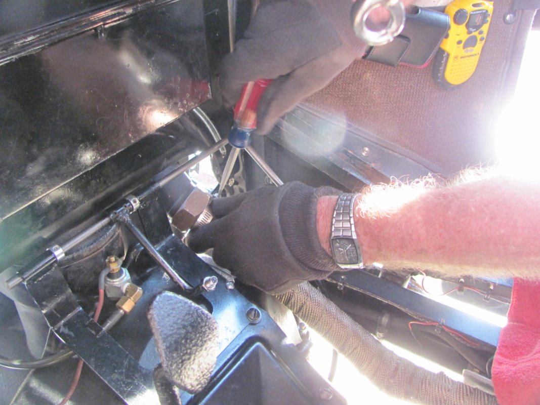 So lucky I had radiator clamp in the supplies and handed it to Vic, and he got in and cranked that nut tight and snuggled that radiator clamp against it.