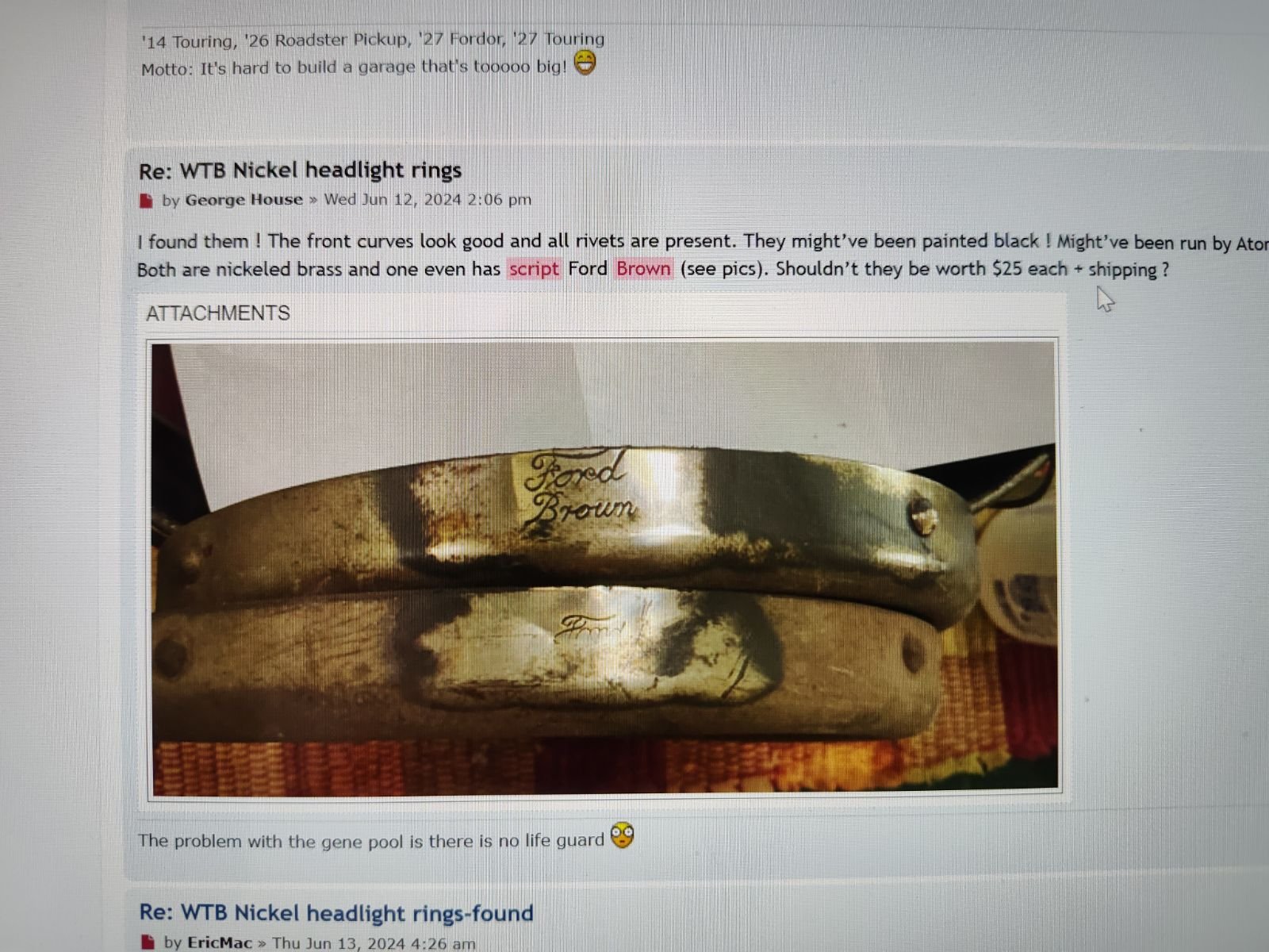 Jno. Brown and E&J were Ford's two primary headlight (and headlamp) supplier during Model T production. Brown headlight rims included their name, too.