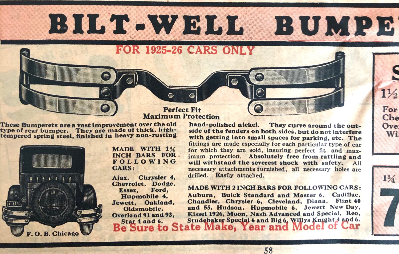 Here are photos of the correct Ford Model T front and rear accessory bumpers for '26 and '27.
