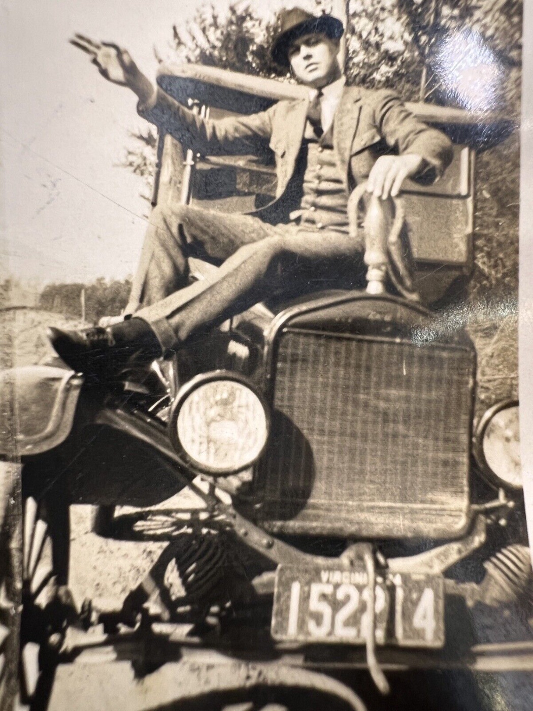 Fantastic photos ! I’m gonna go out on a limb and identify a horseshoe and coke bottle in the left hand of the nattily dressed man sitting on the T cowl in the 9th photo.