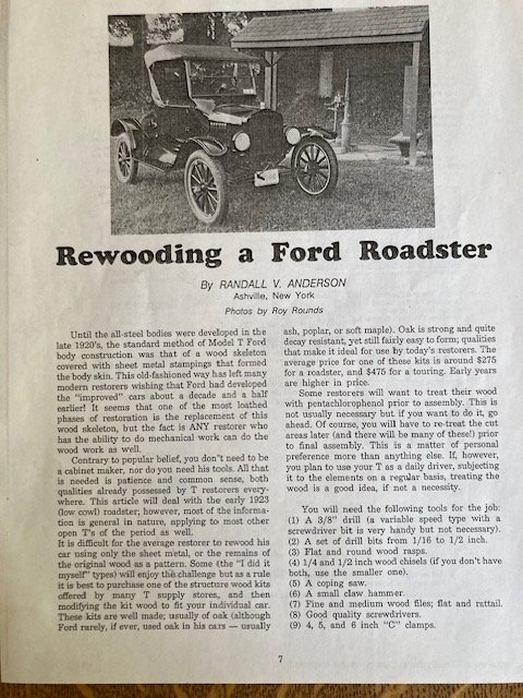 Also, is there any good reference info on how these bodies were put together, especially the wood structure. Mine is a 1918 Roadster.