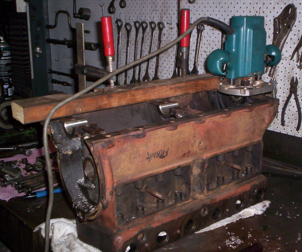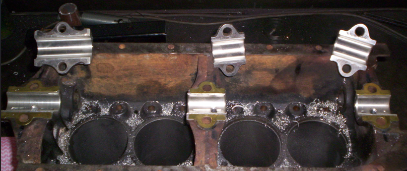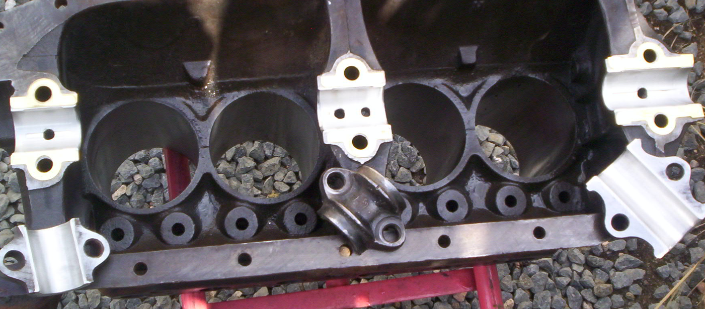 This is a modified block, main bearing saddles have been cut down to accept a Chevrolet crankshaft.