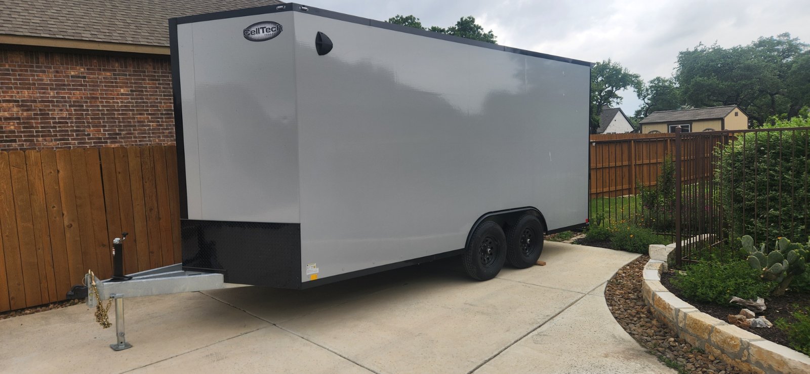 Ok guys, I wanted to let those that responded to this post, and anyone else interested about Enclosed Trailer Options of my decision thanks to the tons of advice you provided together with my personal research into Trailer options. I ended up purchasing a Celltech Trailer built to the attached specs in Waco, Texas. It was a bit expensive but very well built and should hold its value. It does not use wood of any kind. The walls are all molded, check out their website to know more about the construction. Size I chose was 18 foot by 8.5 foot by 8 foot interior height. The e-tracs on the floor are 58 inches apart to accommodate the tire tracks.