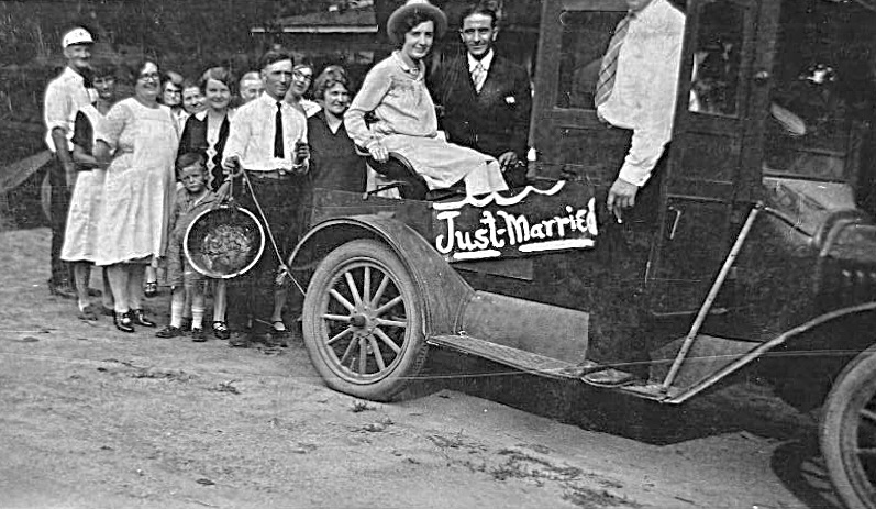 How often do you see a closed cab brass radiator pickup used as a wedding car?