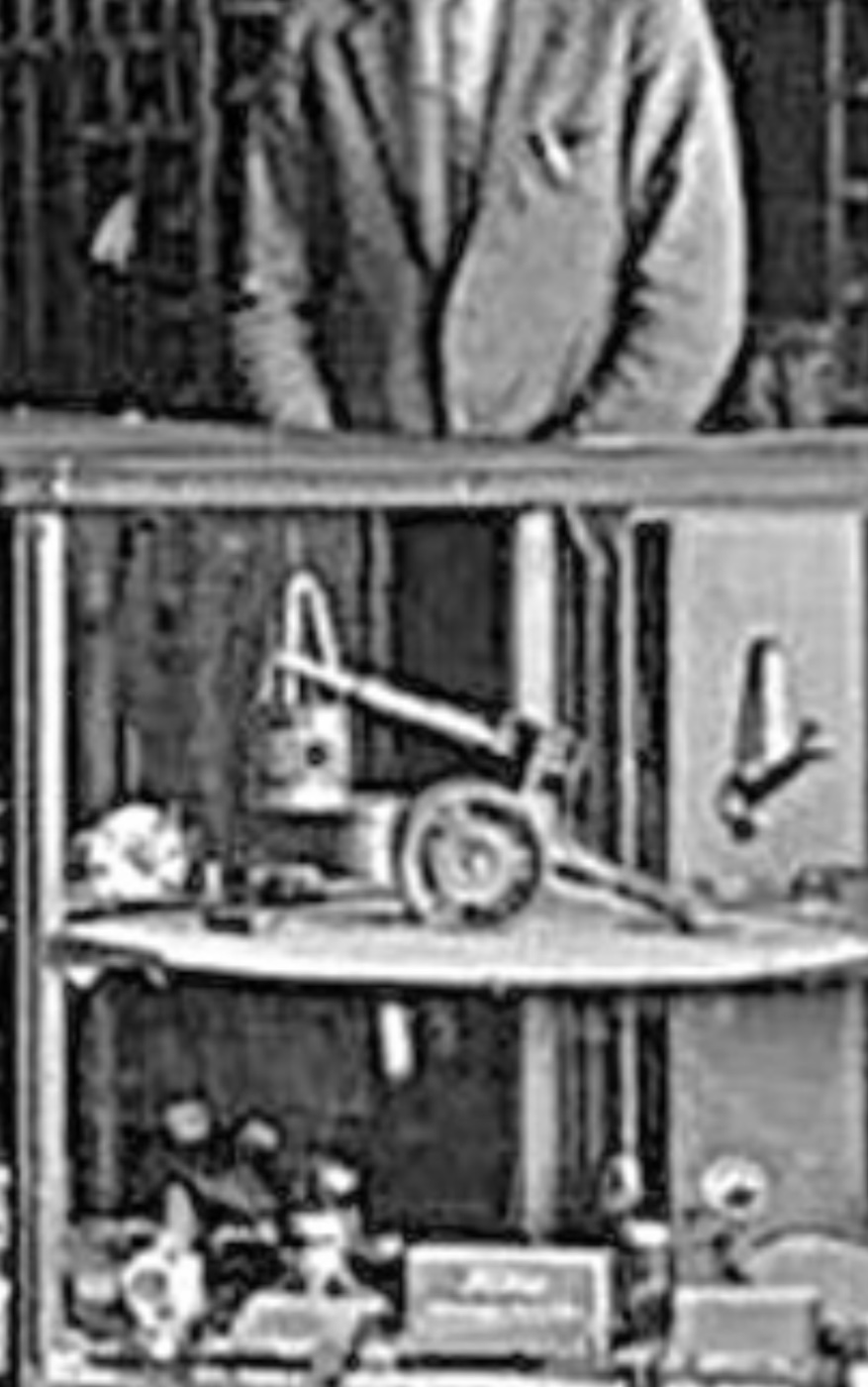 Pic #14. The Dealer's Show room and parts display. Zoomed in on one of the glass cases on the right and noted the "Cannon" in the glass shelf.