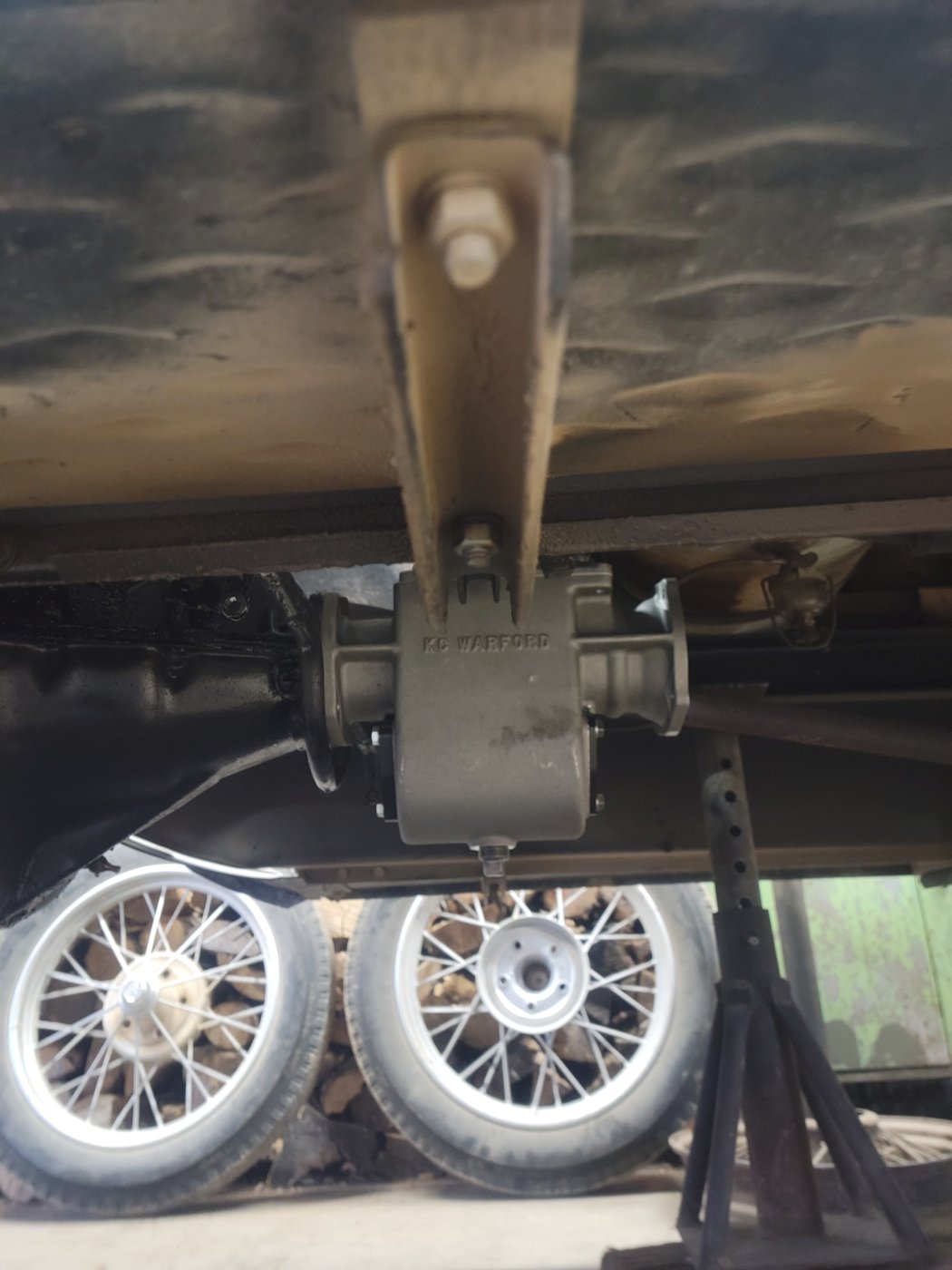 I have a KC Warford in my 1917 shooting brake. I made my support to align with the back of the transmission so the weight of the transmission and the torque tube were better supported. That got around the running board interference somewhat. However, I did have to cut the tie rod between the running board brackets and terminate the inside ends on the trans mounting bolts.