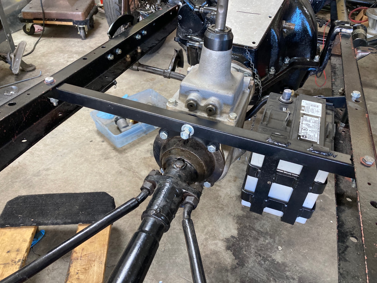 I lengthened the frame to accommodate the Warford, so there is still a full length driveshaft behind the gearbox. By shifting the support to the rear of the trans I thought would be of greater benefit.It works so far.