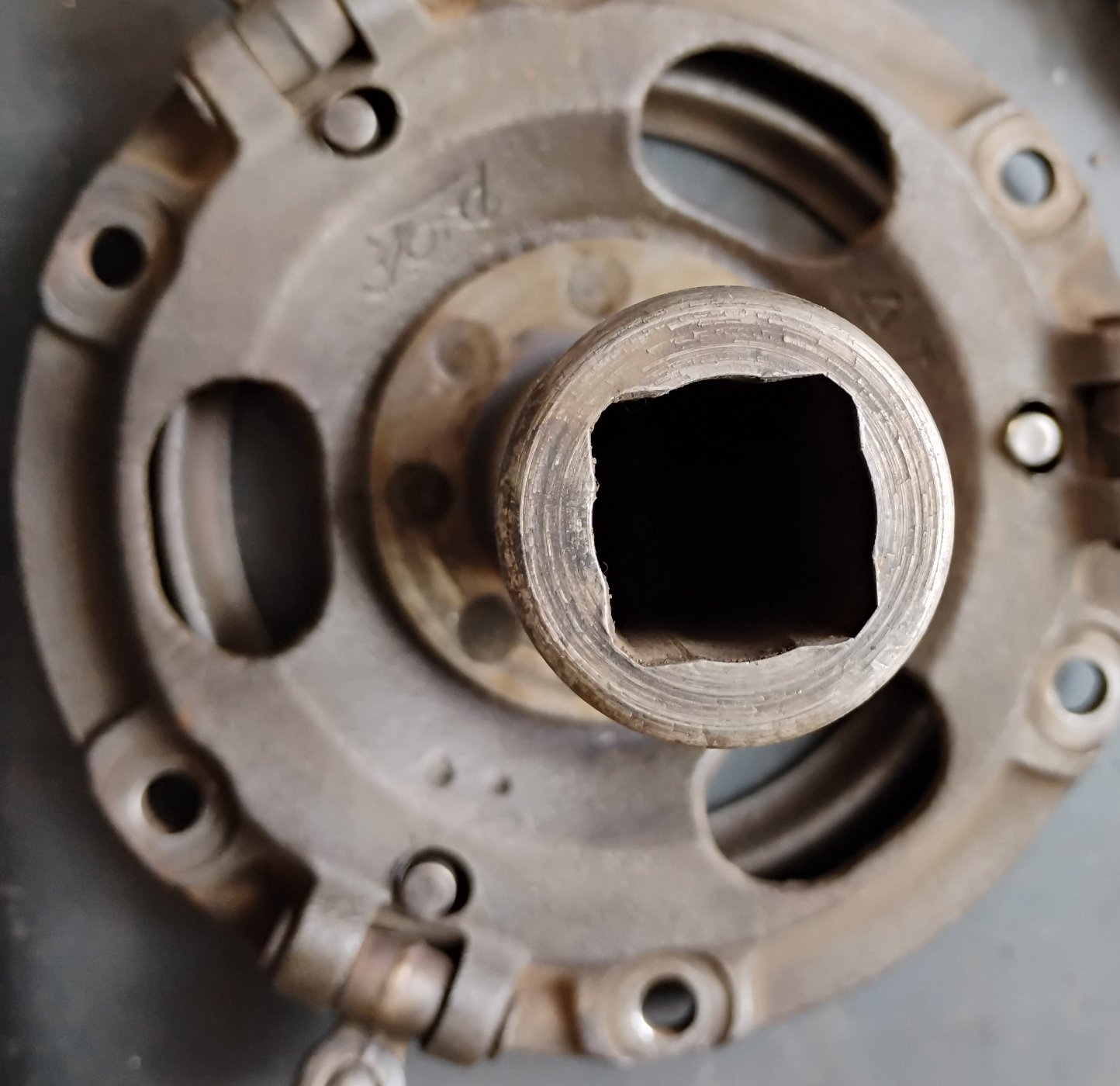 Mine have all the issues shown above, in fact most all of the drive plates I have, have issues including loose rivets, rusted tail shafts, elongated holes, buggerard up rivet holes in both the plate and tail shaft.