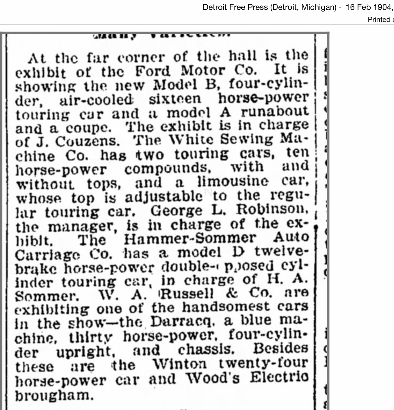 This Detroit Free Press February 1904 article describes the air cooled 4 cylinder Ford: