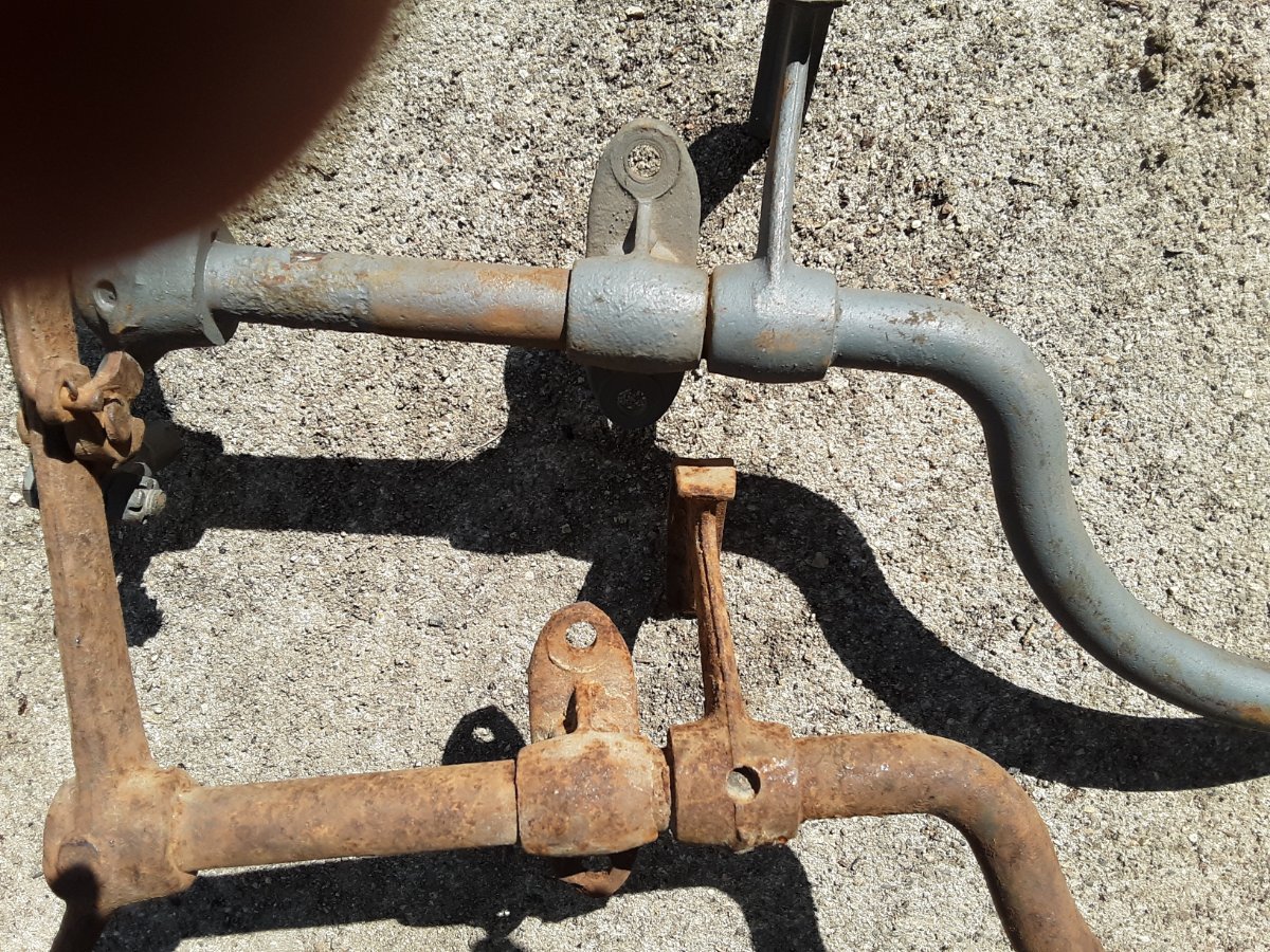 The rusty one is not very, very early, as the rivet holding the pawl is not recessed in the pawl. Neither does the link rod between the release handle and the pawl have forged eyes. It may help further identification if the handle at the top is shown.