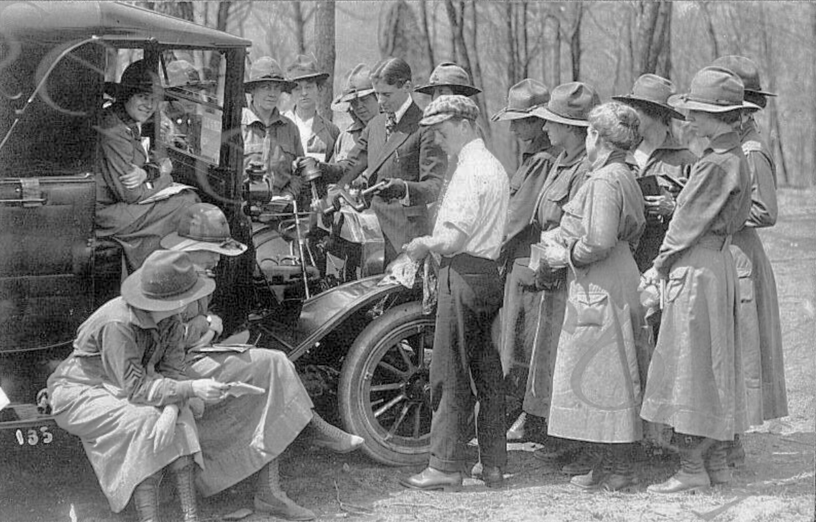 Wonder what’s happening in that 5th photo of the ‘15-‘16 coupelet with the hood off ? Engine still in the frame and 15 people looking intently as one man holds a partial crankshaft in one hand and he holds a piston and connecting rod in another hand ? It further appears most are female army except for the dapper-dressed man holding the partial crank